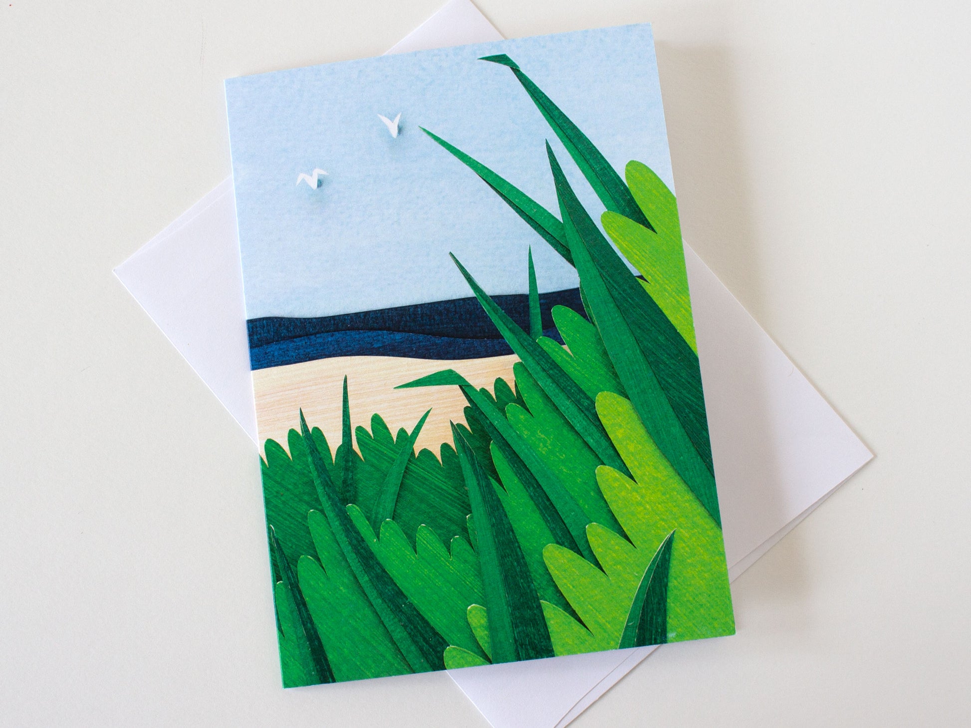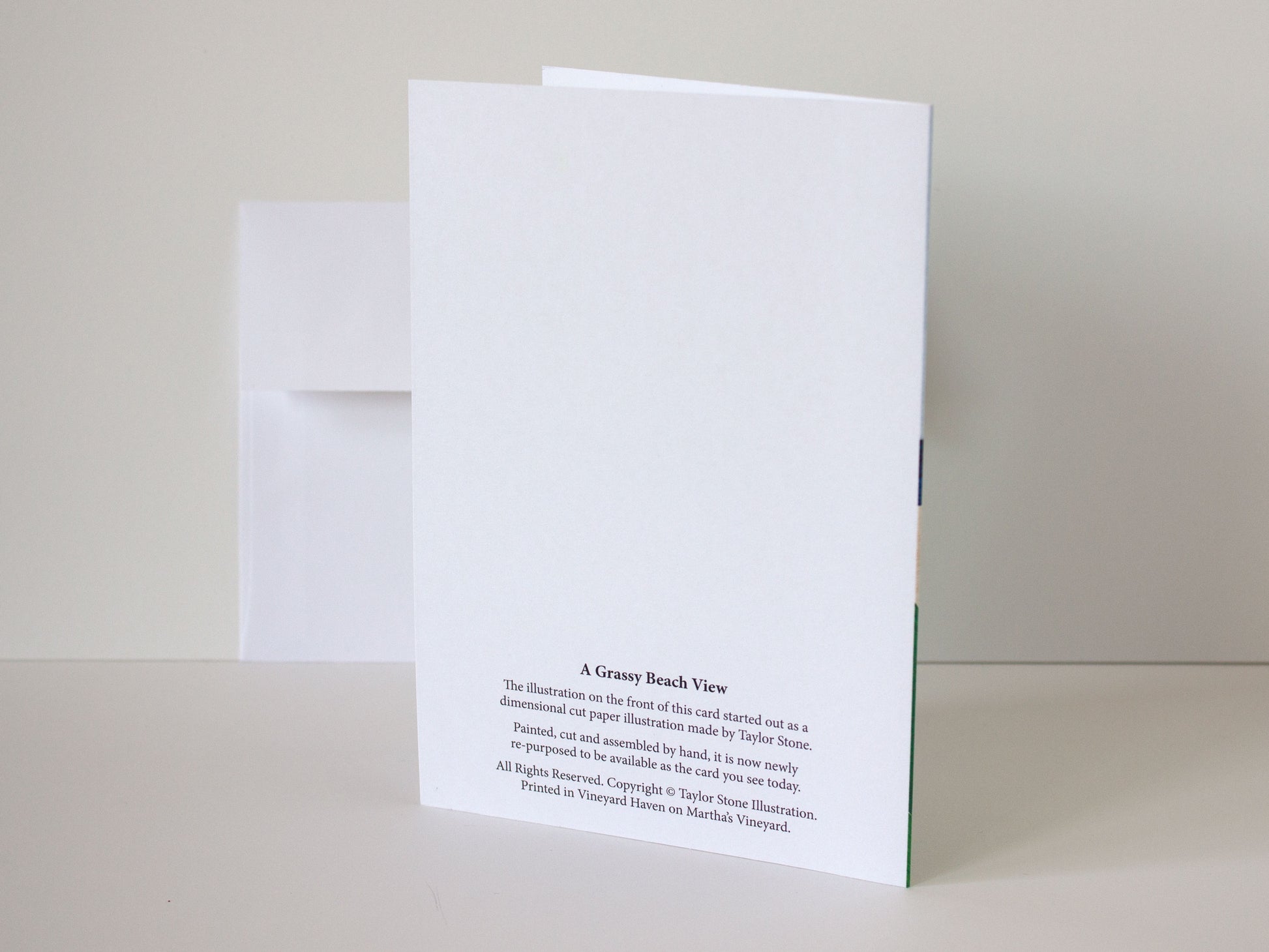 Just like the title says: this is a folded card showing beach grass waving in the breeze on a sunny summer day. Envelope included, blank inside.