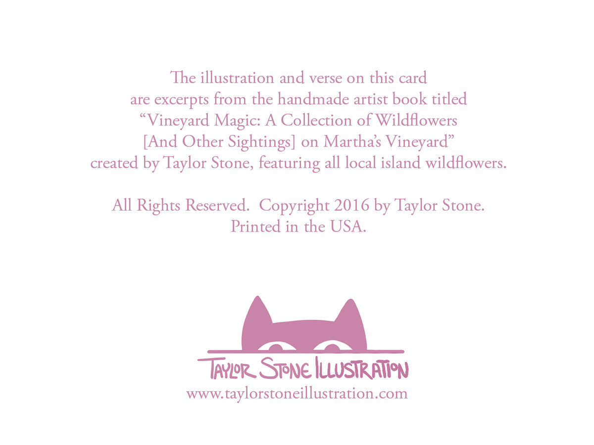 Part of the wildflower series in my "Vineyard Magic" book, this beautiful notecard features the simple Aster, or Daisy, a native flower from my home on Martha's Vineyard, accompanied by a short poem.