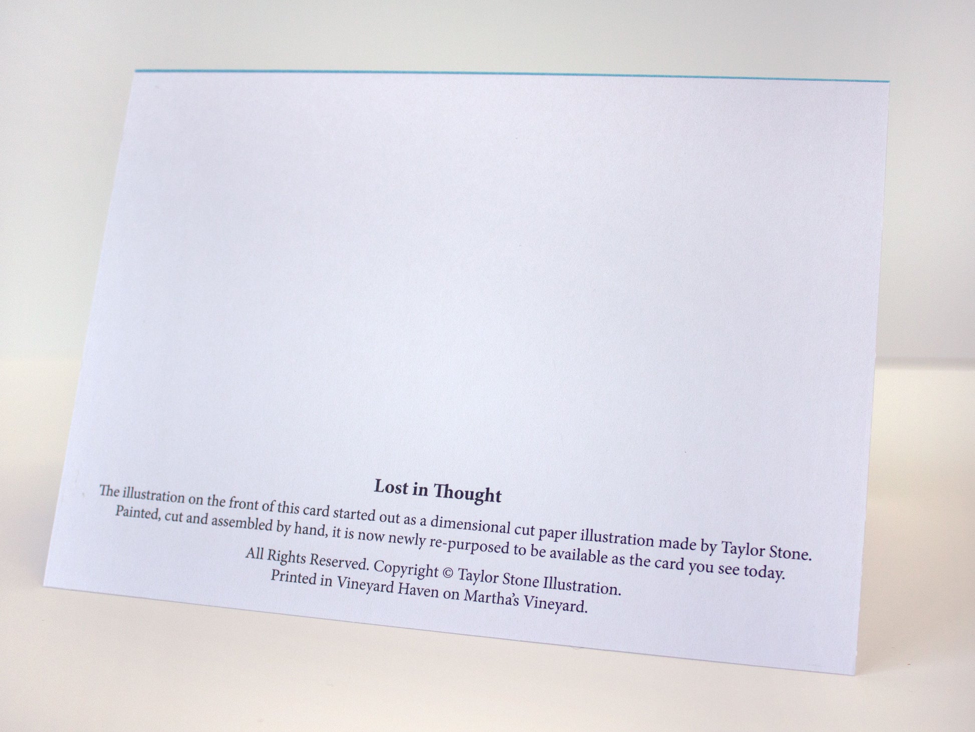 All of my cards started out as dimensional cut paper illustrations which I have photographed and reworked to now be available in card form.