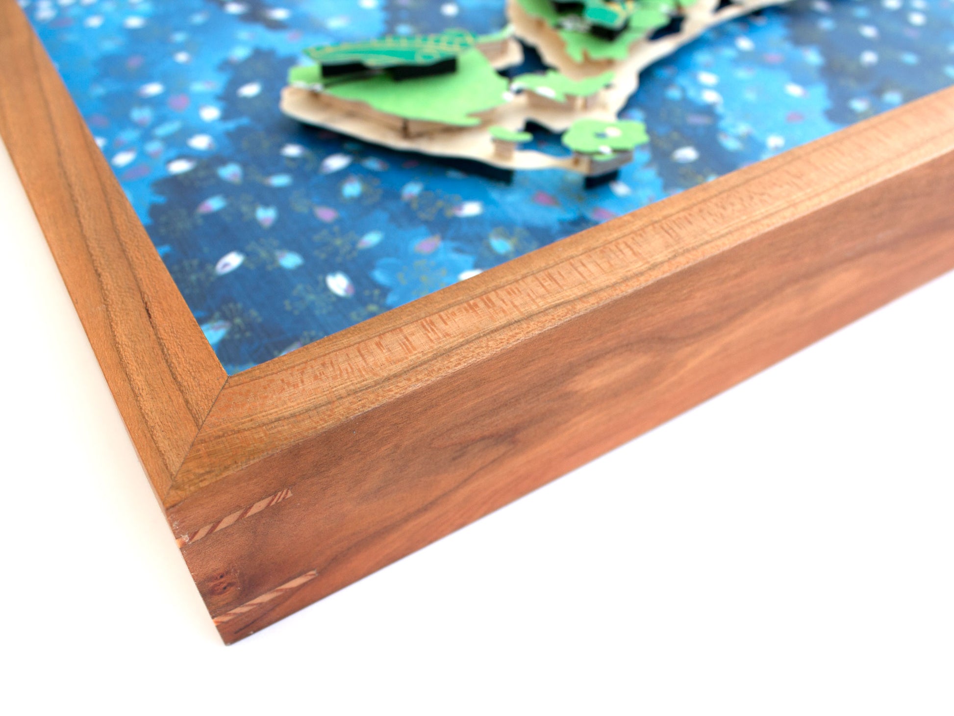 Original illustrations arrive professionally framed, featuring museum glass that is not only entirely clear but anti-glare and UV-protected to boot. The shadowbox frame is made on Martha's Vineyard from cherry by professional woodworker David Wiley.